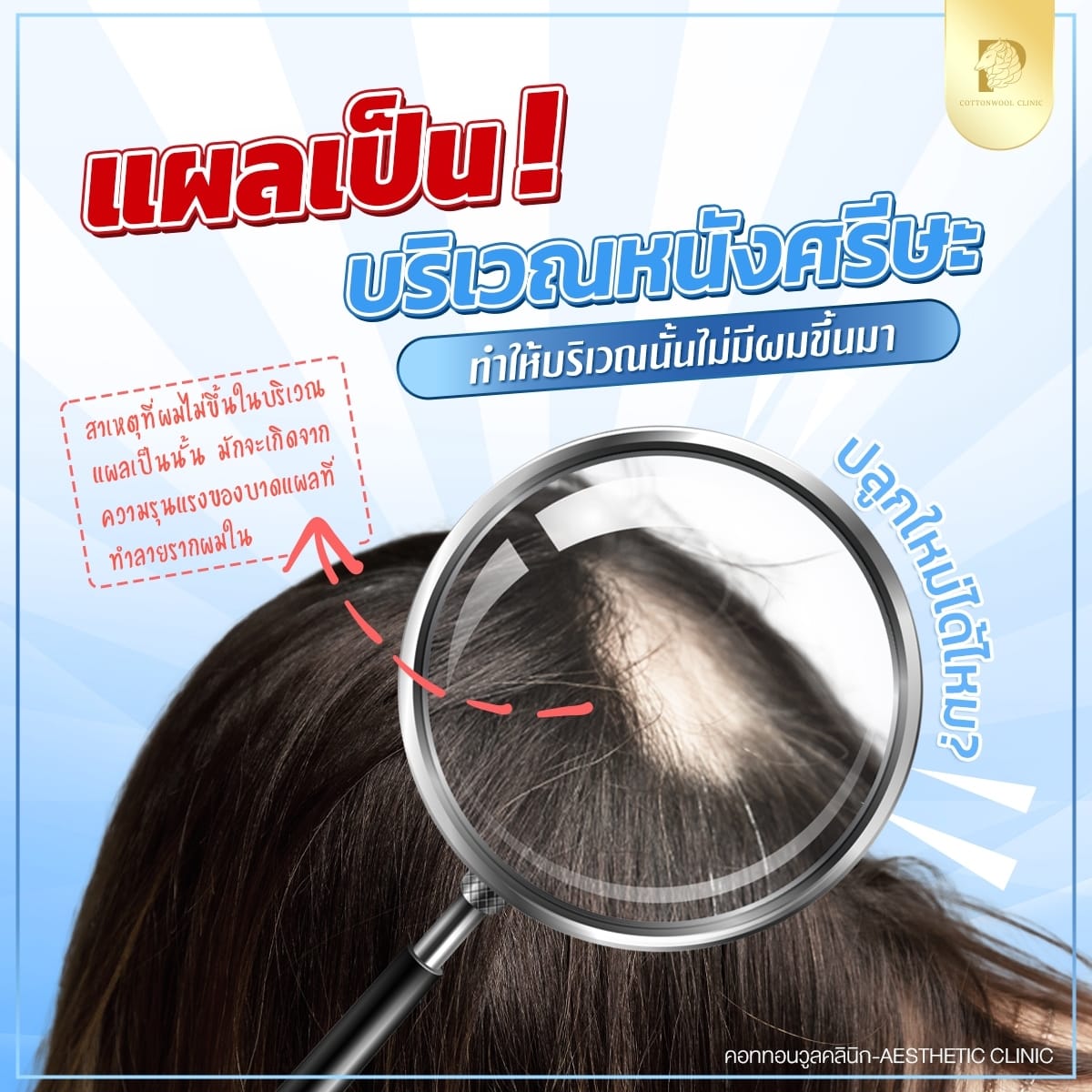 สนใจติดต่อ Cottonwool Clinic คลินิกปลูกผมและเสริมความงามชั้นนำ เชี่ยวชาญด้านการปลูกผม DHI และการดูแลผิว พร้อมให้บริการด้วยมาตรฐานสากล ดูแลโดยแพทย์ผู้ชำนาญการ และใช้ เทคโนโลยีล้ำสมัยที่ช่วยลดรอยแผล ฟื้นตัวเร็ว และปลอดภัย ปรึกษาเราได้แล้ววันนี้ เพื่อความมั่นใจและผิวที่เรียบเนียนในแบบของคุณ